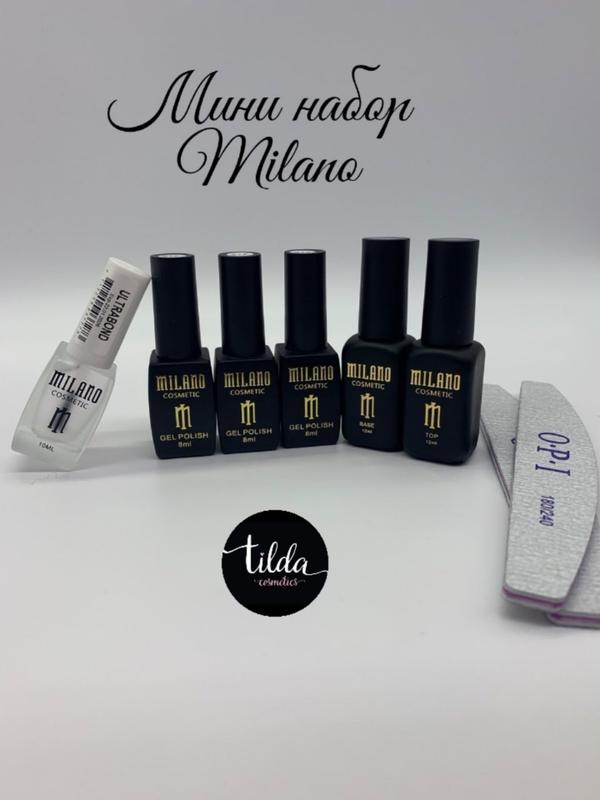 Міні набір Milano 🔥Ціна набору 799 грн✅ 🌺У набір входить👇 👉3 гель лаки Milano (кольори на вибір) 👉Топ та База Milano об'єм 12 мл 👉2 пилки Opi на вибір 👉Ультрабонд Milano об'єм 10 мл