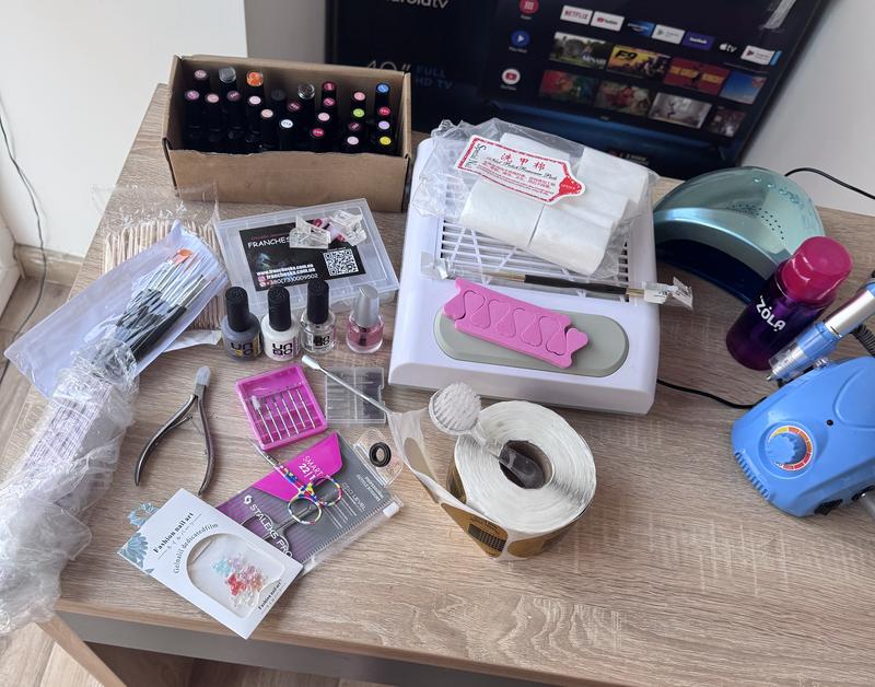1. Фреза 2. Витяжка 3. Лампа 4.Ножницы 5. Пилки 6. Щитка 7. Нижние формы 8. Верхние формы 9. Топ 10. База 11. Праймер 12. Щипцы 13. Масло для кутикули Все остальное по телефону +торг