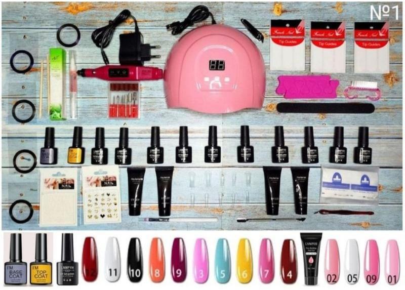 (код1) СТАНОВЫЙ НАБОР ДЛЯ МАНИКЮРА💅 ТУТ ЕСЕ, ПОТРИБНО ДЛЯ КРАСИВЫХ НИГТИКОВ🥰 И НАРОЩОВКА 😍 В набор входит: 1) Уф Лед лампа 54 Вт. Имеет датчик движения, дисплей с таймером. Таймера є на 30, 60 і 99 секунд 2) Фрезер 3) Блок питания для фрезера 4) Фрезы 6 шт 5) База 6) Топ 7) Гель лак 10 шт, цвета смотрите на фото 8) Полигели по 15 мл 4 шт. Цвета смотрите на фото 9) Кость для полигеля 10) Верхние многоразовые формы 10 шт для наращивания ногтей 11) Разделитель для пальцев 12) Пилочка 13) Набор салфеток в ремувере 14) Щетка от пыли 15) Апельсиновые палочки 2 шт 16) Тример для кутикули 17) Кусачки для ногтей 18) Ленты для дизайна 5 шт 19) Полоски для френча 3 набора 20) Масло для кутикулы 21) Пушер 22) Наклейки 3д для ногтей 2 набора Доставка новой или Укрпочтта