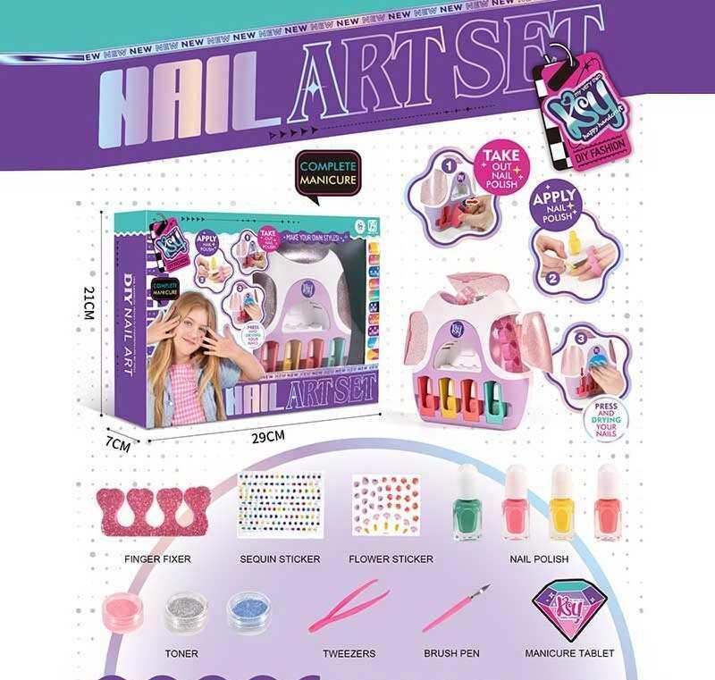 Створіть свій власний манікюрний салон прямо у дитячій кімнаті! Цей унікальний набір KSY 928 пропонує все необхідне для творчого процесу манікюру. Іграшковий апарат для манікюру, що підсвічується, має вбудований вентилятор, який забезпечує швидке висихання лаків. У комплект входять 4 лаки різних кольорів, щоб ви могли експериментувати з дизайном. - Включає пилочку, розділювач для пальців, пінцет, пензлик, блискітки, наліпки. - Яскравий та стильний дизайн, який привертає увагу. - Працює від 3-х батарейок типу АА (не входять у комплект). - Вентилятор вмикається за допомогою кнопки, що робить процес ще зручнішим. Цей набір стане чудовим подарунком для маленьких модниць, які хочуть навчитися створювати красиві манікюри!