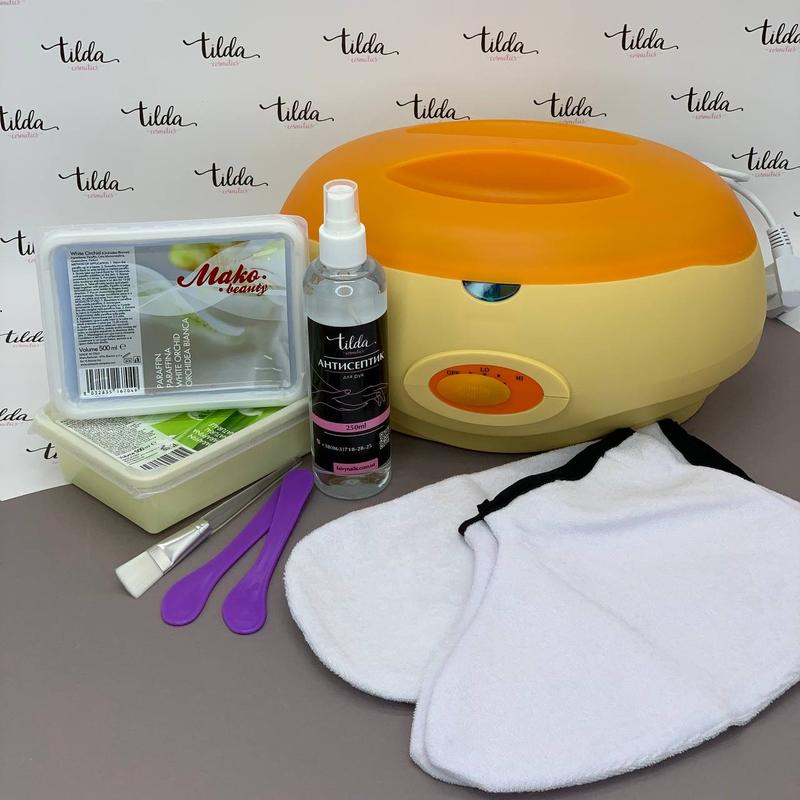 Стартовый набор для парафинотерапии Цена 1690 грн В набор входит: 1. Парафиновая ванна (парафинотопка) 2. Парафин Мако 500 мл 2 шт 3. Носки для парафинотерапии многоразовые 4. Перчатки для парафинотерапии многоразовые 5. Антисептик для рук Tilda cosmetics 250 мл 6. Кисть для нанесения бьюти продуктов с прозрачной ручкой 15 см 7. Шпатель пластиковый 2 шт