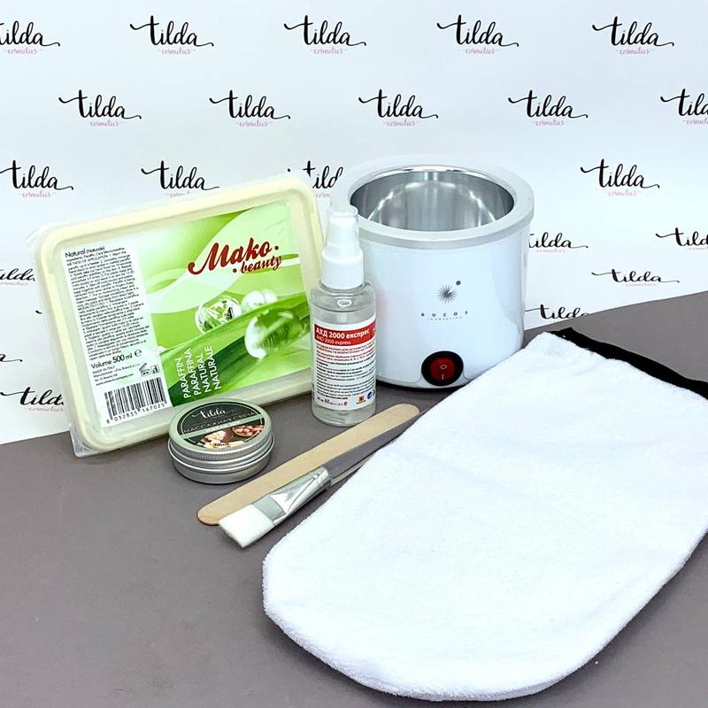 Набір для парафінотерапії рук Ціна 799 грн В набір входить: 1. Обладнання для розігріву парафіну та воска BUCOS CP-200, 100 вт., 200 мл 2. Парафін Мако 500 мл 3. Рукавиці для парафінотерапії багаторазові 4. Засіб для дезінфекції АХД-2000, 60 мл 5. Свічка масажна Tilda cosmetics 30 мл 6. Пензлик для нанесення б'юті продуктів із прозорою ручкою 15 см 7. Дерев'яний шпатель