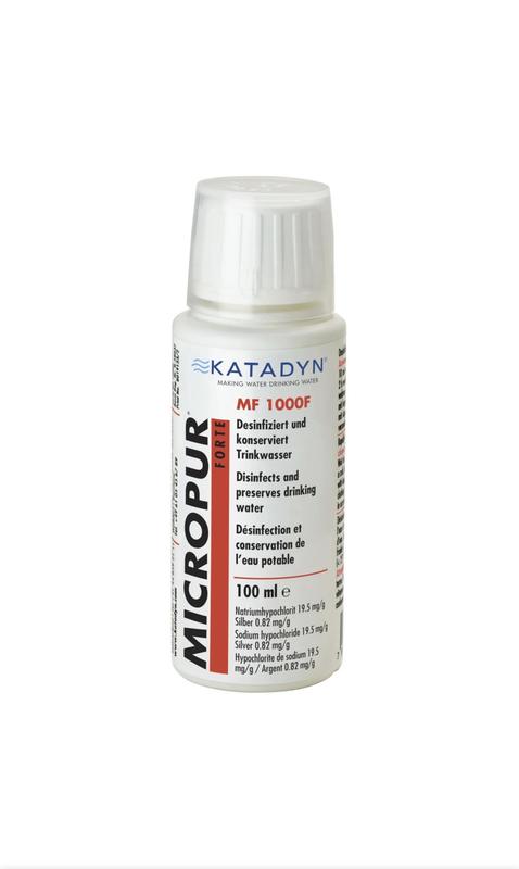 Жидкость для дезинфекции воды Micropur Forte MF 1.000F (100 мл) Micropur Forte Fluid – концентрированная жидкость для обеззараживания воды с ионами серебра. Эффективна против вирусов и микроорганизмов: бактерий, простейших и их цист. Подойдет для обработки водопроводной воды, воды из подземных источников или любой другой пресной воды, очищенной от взвешенных примесей путем механической фильтрации. Используйте для дезинфекции воды для питья, приготовления пищи и мытья — если ее микробиологическая безопасность сомнительна. Особенности Активные вещества — гипохлорит натрия и ионы серебра. Быстро и эффективно дезинфицируют и консервируют воду. Устойчивое соединение хлора уничтожает вирусы и бактерии в течение 30 минут. А также, благодаря сильному окислительному действию, нейтрализует большинство простейших и грибных спор. Для разрушения амеб, лямблий и цист криптоспоридий рекомендуется соблюсти интервал в 120 минут. Ионы серебра препятствуют развитию микробов в резервуаре в течение следующих 6 месяцев. Содержание серебра помогает уменьшить дозировку хлора, так что препарат почти не оставляет запаха. Действующие вещества разрешены к использованию в питьевой воде и вполне безопасны в рекомендуемой дозировке. Одной баночки хватает для очищения 100–1000 л воды (рекомендуемая дозировка: 1 г на 10 л). Средство идеально подходит для путешествий и подготовки запасов воды к длительному хранению. Также рекомендуется к применению в системах очистки воздуха и отопления, увлажнителях и других сосудах, где застаивается вода. Может использоваться с пластиковой и стеклянной тарой. Перед использованием в металлической таре проверьте химическую совместимость. Используйте средство только для прозрачной воды, поскольку взвешенные твердые частицы могут ослабить действие гидрохлорита и ионов серебра. Если необходимо обеззараживать мутную воду, предварительно пропустите ее через любой механический фильтр — уголь или сложенную в несколько раз ткань. Благодаря компактной и легкой упаковке препарат удобно транспортировать. Упаковка оснащена дозатором, поэтому применение жидкости Micropur Forte очень простое и не требует специальных навыков. Продукт изготовлен и протестирован в Швейцарии.