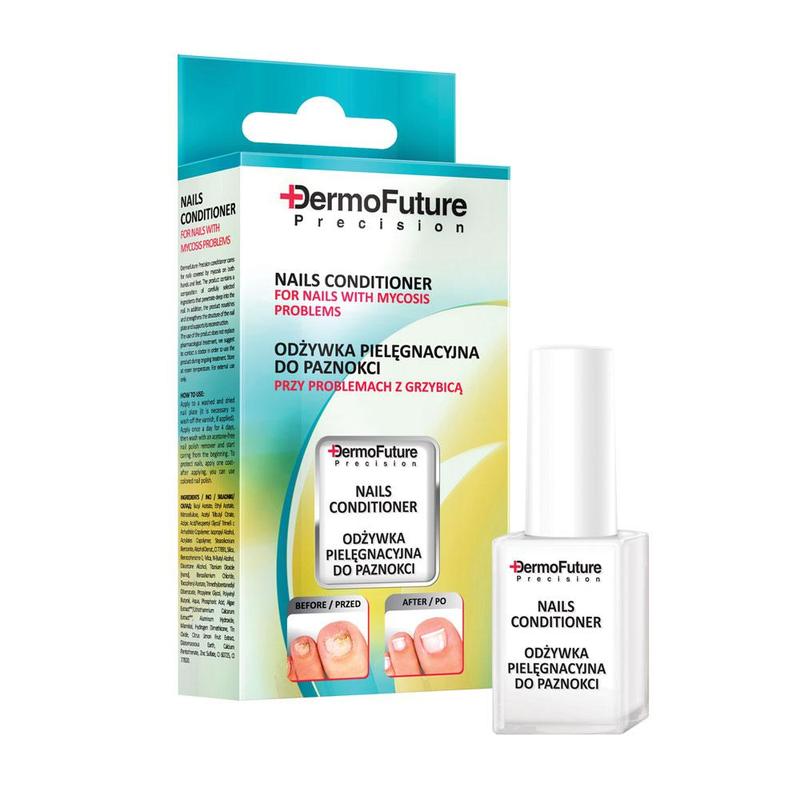 DermoFuture-терапія запобігає грибковій інфекції нігтів (оніхомікозу) і відновлює здоров'я нігтів. Містить композицію інгредієнтів, які проникають глибоко в нігті та уповільнюють надмірний ріст мікроорганізмів, в такий спосіб захищаючи від мікозів. Засіб зміцнює структуру нігтьової пластини та допомагає її відновленню. Аплікатор ідеально підходить для нанесення й робить лак- терапію простим у використанні. Рекомендується для людей зі слабкою та пошкодженою нігтьовою пластиною, вразливою до грибкових інфекцій.Продукт створює на нігтьовій пластині водонепроникний захисний шар, який обмежує розвиток грибків і прискорює реконструкцію нігтьової пластини. Запобігає рецидиву зараження грибковими інфекціями та пришвидшує реконструкцію здорової нігтьової пластини. Результати помітні вже через чотири тижні застосування. Не містить шкідливих для здоров’я речовин. DermoFuture-терапія розроблена спеціально для людей, що мають схильність до мікозу через їхню роботу чи інші види діяльності, такі як відвідування будь-яких громадських об'єктів, басейнів, пляжів, спортзалів, саун, душових кабін у громадських приміщеннях, готелях та спа-центрах, де ризик інфікування значно зростає (спори грибків, як правило, стійкі до більшості миючих засобів). Профілактика грибкових захворювань: • дезінфікувати засоби догляду за нігтями• позбавлятися або хоча б дезінфікувати взуття, яке ви носили• одягати взуття, що забезпечує правильну циркуляцію повітря• носити легкі шкарпетки з натуральних матеріалів• регулярно змінювати рушники та намагатися прати їх при високих температурах• мити та ретельно сушити килимиДогляд за стопами: • додавати відповідну сіль або кондиціонер для шкіри в теплу ванну• у спеку використовувати охолоджуючі гелі• після того, як помили ноги, ретельно витирати їх насухо• обов’язково зволожувати шкіру стоп після ванниДогляд за руками: • зволожувати шкіру рук після кожного миття• взимку використовувати більш жирний крем, влітку - легкий і зволожуючий• на ніч наносити товщий шар крему чи маски на руки• скрабувати руки раз на тиждень