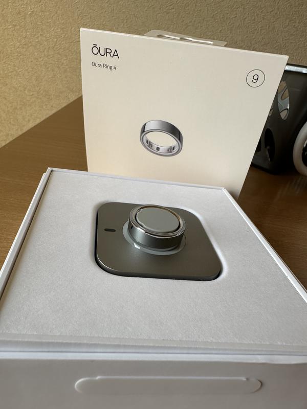 Придбано 15 грудня 2025 року на Rozetka. Гарантія продавця — 12 місяців. Одягалося 1 раз для перевірки, не підійшло за розміром. Безкоштовна підписка на 1 місяць. Гарантія продавця -12 місяців Одягалося 1 раз для перевірки, не підійшло за розміром. Безкоштовна підписка на 1 місяць Розумне кільце Oura Ring 4 — максимум технологій у мінімальному форматі Oura Ring 4 - це не просто аксесуар, а компактний і надточний трекер здоров'я, прихований у стильному титановому корпусі. Ідеальний вибір для тих, хто цінує мінімалізм без компромісів у функціональності. Переваги Oura Ring 4 : • Покращені сенсори нового покоління (включно з SpO,); • Відстеження сну, пульсу, активності, рівня стресу та температури тіла; • Al-аналіз стану організму та персональні рекомендації; • Автономна робота до 7 днів на одному заряді; • Водостійкість до 100 м — можна не знімати навіть у душі; • Легкий, гіпоалергенний титановий корпус з DLC- покриттям.