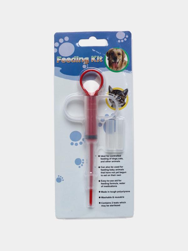 Таблеткодаватель (интродьюсер) Feeding Kit для быстрого и безопасного введения лекарственных препаратов домашним животным. Ветеринарный интродьюсер лекарственных препаратов для кошек и собак. Оснащен высококачественным мягким наконечником. Интродьюсер обеспечивает безопасный и быстрый способ введения лекарственного препарата (включая твердые и жидкие формы) кошкам и собакам. Изготовлен из качественного нетоксичного пластика. Рекомендуется как опытным, так и молодым специалистам. Способ применения: зафиксировать таблетку в резиновом наконечнике, открыть рот питомцу, поместить наконечник таблеткодавателя на корень языка, надавить на поршень и вытолкнуть лекарство, вынуть инструмент и закрыть рот животному, чуть приподняв ему голову и стимулируя сглатывание поглаживанием по горлу.