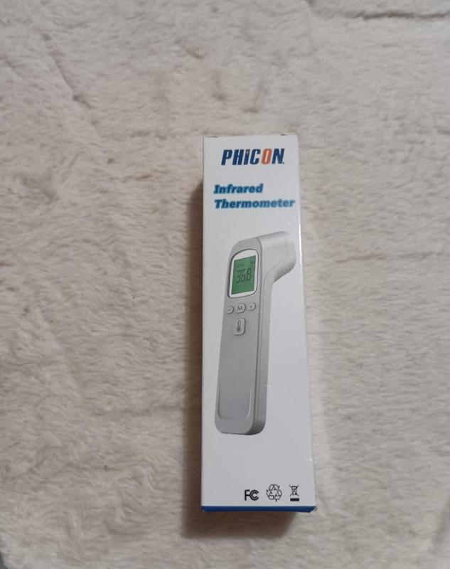 дитячий термометр безконтактний, дуже гарно вимірює температуру дітям,працює від двох батарейок.