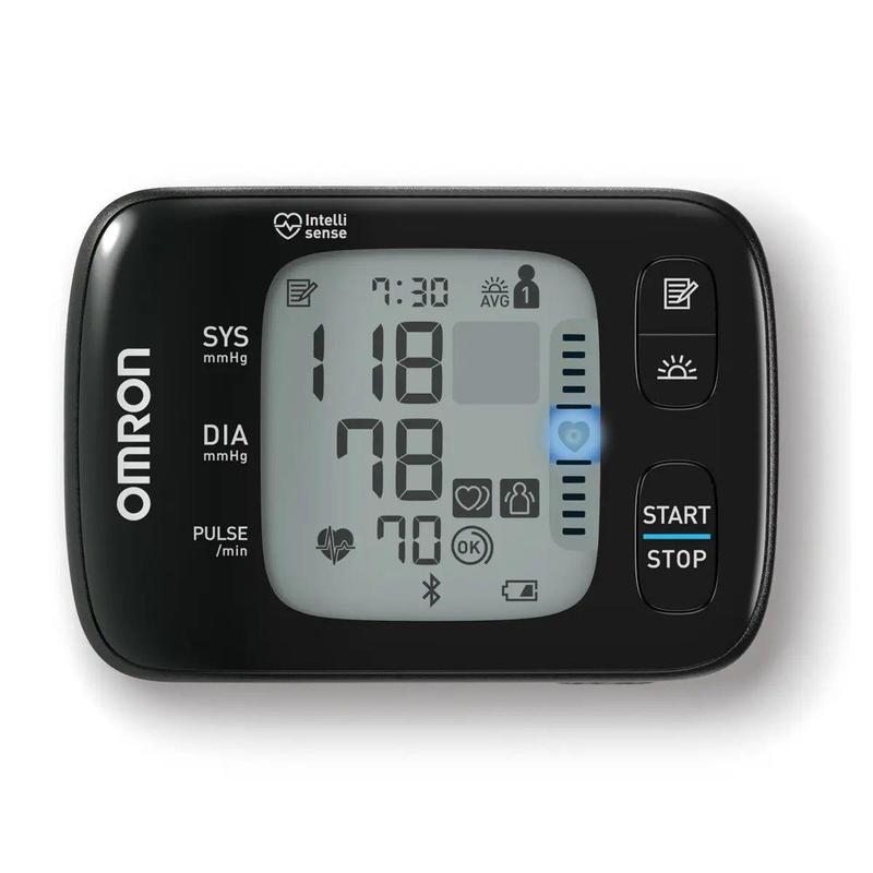 Опис: Автоматичний тонометр OMRON RS7 Intelli IT - це пристрій для тих, хто стежить за станом свого здоров'я. Цей тонометр оснащений різними функціями, завдяки яким ви можете комфортно, оперативно та з високою точністю з'ясувати рівень свого артеріального тиску та частоту пульсу. Особливості зап'ястного тонометра OMRON RS7 Intelli IT: ¤ технологія інтелектуального виміру Intellisense - точний результат навіть при порушеннях ритму серця. ¤ бездекомпресійний метод - запорука прискореного виміру. ¤ ергономічна манжета для охоплення зап'ястя (13,5-21,5 см) забезпечує природне розташування приладу на руці, що сприяє точному результату. ¤ пам'ять по 100 вимірів з індикацією дати та часу для 2 користувачів. ¤ індикатор правильної фіксації манжети унеможливлює неправильне накладення манжети на зап'ястя. ¤ розрахунок середнього значення тиску за результатами 3 вимірювань за останні 10 хвилин. ¤ індикатор аритмії. ¤ індикатор руху. ¤ датчик правильного положення руки. ¤ індикатор ранкового середнього значення. ¤ індикатор ранкової гіпертензії. ¤ індикатор гіпертонії. ¤ можливість підключення до мобільного телефону через OMRON CONNECT. Технічні характеристики зап'ястного тонометра OMRON RS7 Intelli IT: • Розмір манжети - 13,5-21,5 см • Індикатор аритмії • Пам'ять на 100 вимірів для кожного з 2-х користувачів • Дата і час • Діапазон вимірювання тиску: від 0 до 299 мм рт. ст. • Точність: • Діапазон вимірювання пульсу: від 40 до 180 уд. хв. • Точність вимірювання пульсу: • Джерело живлення батареї • Параметри приладу 18 х 60 х 21 мм Комплектація: електронний блок з манжетою, комплект елементів живлення ААА, футляр для зберігання приладу, посібник з експлуатації, гарантійний талон. Виробник: OMRON Гарантія: 5 років