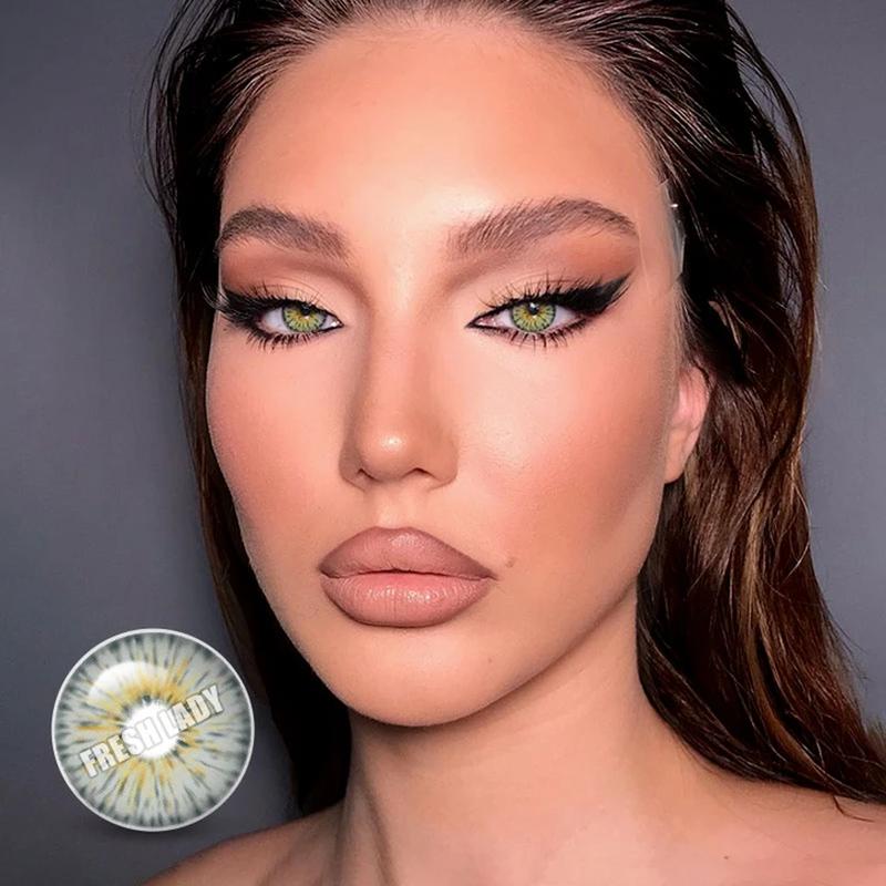 Кольорові лінзи Freshlady — комфорт, краса та безпека Переваги 1. Якість та безпека - Подвійний контроль на виробництві - Європейський знак відповідності (CE) - Сертифікат міжнародного стандарту ISO 2. Сучасний дизайн - Актуальні колекції та модні відтінки - Широкий вибір кольорів - Технологія фарбування «три в одному»: - Базовий колір - Ефект райдужки - Контур для природного вигляду 3. Насичений колір - Підходять навіть для темних очей - Виглядають ефектно вдень і ввечері * * * Характеристики - Діаметр: 14.0–14.5 мм - Базова кривизна: 8.6 мм - Товщина в центрі: 0.08 мм - Вологовміст: 38–42% - Без діоптрій (0.00) - Матеріал: гідрогель - Термін носіння: до 1 року - Термін придатності: 5 років * * * Рекомендації 1. Одягати лише чистими руками 2. Носити не більше 8 годин на день 3. Обов’язково знімати на ніч 4. Використовувати індивідуально