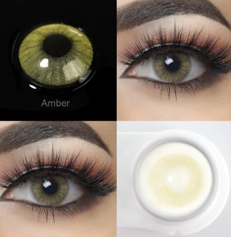 Кольорові лінзи зелено-каріє amber+ контейнер для зберігання в подарунок