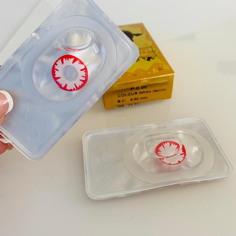 Косметичні кольорові червоно-білі лінзи крейзі на хелловін