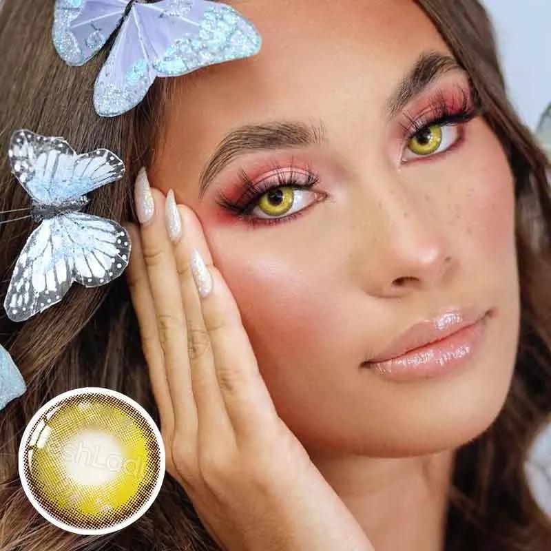 Желтые цветные контактные линзы для глаз, отличное перекрытие своего цвета + контейнер для...
