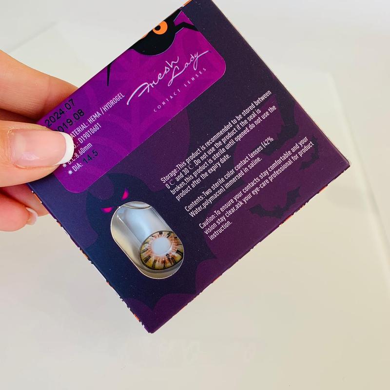 Почувствуй атмосферу загадки и волшебства 👁️ Эти цветные линзы станут главным акцентом твоего образа -- добавят взгляду глубину, выразительность и немного мистики. Подойдут для вечеринки, косплея, фотосессии или просто для смены имиджа. * * * 🧿 Характеристики: - Диаметр: 14.0 - 14.5 мм - Влагосодержание: 38% - 42% - Срок ношения: до 1 года - Материал: гидрогель - Срок годности: 5 лет * * * 📋 Правила использования: 1. Надевайте линзы только чистыми и сухими руками. 2. Не носите линзы более 8 часов подряд. 3. Обязательно снимайте линзы на ночь. 4. Используйте линзы индивидуально, не передавайте другим.