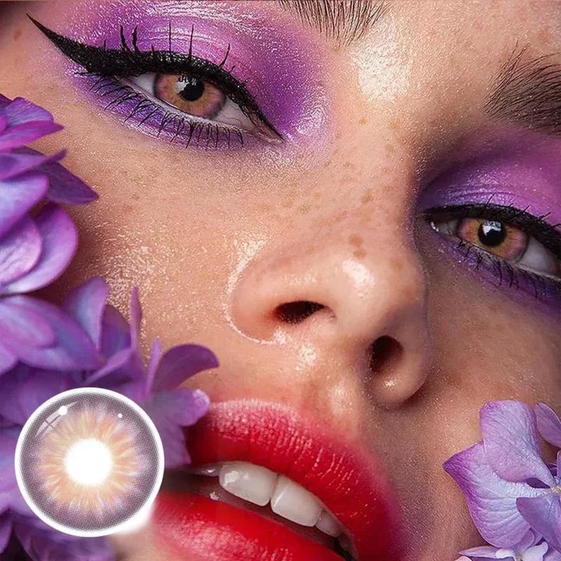 Карі з рожевим відтінком кольорові контактні лінзи для очей, чудове перекриття свого кольо...