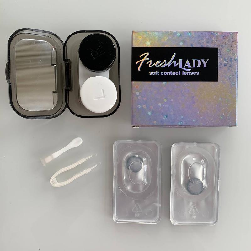 🌈Комфортные качественные цветные линзы 🐬Красивый …. цвет; 💦Воздухопроницаемые, не сушат глазки цвет; 💎Срок ношения - 6 месяцев 💎Диаметр - 14.0-14.5 💎Оптическая сила - 0 💎Кислородопроницаемость - 21,6 Dk/t 💎Влагосодержание - 55 💎Материал - Фемфилкон А 💎Толщина в центре - 0,08 💎Тип материала - гидрогель 💎Вес упаковки - 16,3 гр ❗️На вторую пару скидка 50%; 🚗Доставка по Украине 2 дня ✈️Доставка по миру 12-14 дней