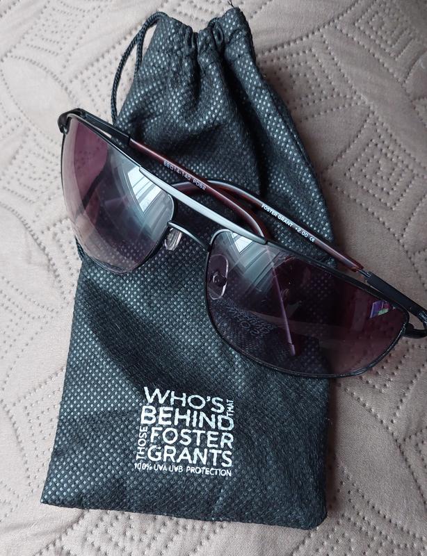 Солнцезащитные очки Foster Grant -эти солнцезащитные очки обладают преимуществами устранения бликов и 100% защиты от UVA / UVB, имеют эксклюзивные линзы, улучшающие цвет. В нижней части имеет квадратные вставки для зрения +2.Состояние новых.Вся информация на дужках.