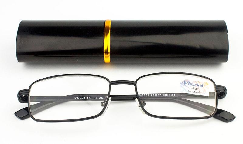 Стильні та якісні готові окуляри у пластикових та металевих оправах від виробника Vizzini стануть чудовою прикрасою для жінок та чоловіків. Особливість готових діоптрійних окулярів полягає в тому, що діоптрій на обидва ока однакові і відстань між центрами стандартна 62-64 мм. Футляр в комплекті від +0,75 до +4,00 крок 0,25