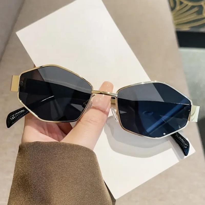 Очки солнцезащитные унисекс. Геометрические. С золотой оправой