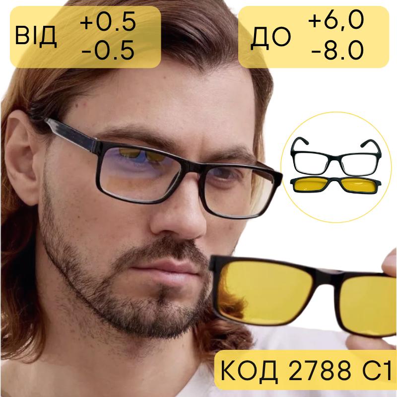 Окуляри для водіїв з магнітною кліпсою та діоптріями, прямокутна пластикова оправа. Код: 2788 С1 Діоптрії в наявності: Плюсові: +0.5, +0.75, +1.0, +1.25, +1.5, +1.75, +2.0, +2.25, +2.5, +2.75, +3.0, +3.25, +3.5, +3.75, +4.0, +4.25, +4.5, +4.75, +5.0, +5.25, +5.5, +5.75, +6.0 Мінусові: -0.5, -0.75, -1.0, -1.25, -1.5, -1.75, -2.0, -2.25, -2.5, -2.75, -3.0, -3.25, -3.5, -3.75, -4.0, -4.25, -4.5, -4.75, -5.0, -5.25, -5.5, -5.75, -6.0, -6.25, -6.5, -6.75, -7.0, -7.25, -7.5, -7.75, -8.0 ### 🚗 2 в 1: стильні окуляри для зору та захист для водіння! Ця модель -- ідеальний вибір для тих, хто шукає універсальні окуляри для зору, які легко перетворюються на водійські завдяки знімній затемненій кліпсі на магнітах 🕶️ 🌤️ Захищають очі від сонця та відблисків фар, водночас залишаючись легкими і зручними. Без кліпси -- це повноцінні окуляри для зору з прямокутною пластиковою оправою. 🔹 Форма оправи: прямокутна 🔹 Оправа: пластикова, чорного кольору 🔹 Кліпса: знімна, на магнітах, із затемненням ✅ Рекомендуємо: - Водіям і автолюбителям - Для денного та нічного водіння - Для щоденного використання 📌 Характеристики: - Тип: окуляри для зору з магнітною кліпсою - Діоптрії: за рецептом або стандартні - Призначення: звичайні + водійські - Оправа: пластикова, чорного кольору - Форма: прямокутна 📊 Дивіться характеристики: 💬 Потрібна консультація? Звертайтесь до нашого менеджера!