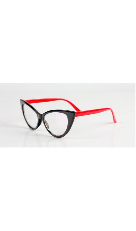 Окуляри іміджеві кішка класика, з прозорою лінзою чорний з червоним