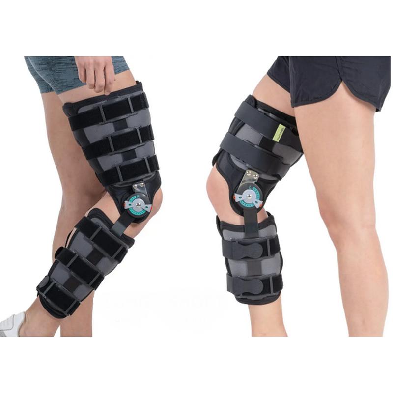 Ортез колінного суглоба з можливістю регульованого кута згинання призначений для стабілізації й іммобілізації суглоба. Конструкція складається з алюмінієвих планок, шарнірів і ременів. Ремені роблять ортез універсальним за розміром і відповідним до будь-якої анатомії. Кут вигину регулюється від 0-120° з кроком 15°. Іммобілізація доступна під кутом від 0 до 90° з кроком 15. Забезпечує виняткову підтримку та стабільність після травми коліна, для захищеної активності під час післяопераційної реабілітації після хірургічного відновлення та реконструкції зв'язок. Показання післяопераційні реабілітації; травми надколінка, меніска; переломи берцевої кістки, щіток; остеотомія; розриви, травми зв'язок і сухожиль; нестабільність колінного суглоба. Має два розміри: короткий — 45 см (для фіксації колінного суглоба); довгий — 65 см (для фіксації колінного суглоба та більшої частини ноги). Вибір розміру не залежить від довжини ніг, підлоги та комплекції людини (зріст, вага). Ортез має 2 різновиди, що відрізняються один від одного об'ємом охоплення фіксації ноги. Ці ортези не рекомендується використовувати одночасно на обох ногах, оскільки можлива деформація регулювального механізму. Перед вибором розміру ортеза настійно рекомендуємо проконсультуватися з лікарем. Фіксується липучками гарної якості. Виробництво: Туреччина.
