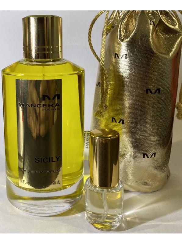 Спекотна Сицилія, країна цитрусових дерев і пишних квітів, яка підкорює як місцевих жителів, так і туристів надзвичайно прекрасною природою, надихнула талановитого французького парфумера П'єра Монтале на створення композиції Sicily. Ця парфумована вода вийшла у різдвяній колекції нішевого Дому Mancera у 2016 році і миттєво підкорила всіх поціновувачів цитрусових ароматів. Фруктовий вибух, який наповнює простір соковитими і яскравими бризками, оточує вас запахами ананасів і персиків, яблук і мандаринів, грейпфрута і бергамота. Розкішний і пишний квітковий букет, сплетений з гілочок жасмину, рожевих бутонів, ніжних фіалок і томного іланг-ілангу продовжує розкриття парфумів, щоб потім доповнитись ніжним білим мускусом і свіжістю деревини. Віртуальна подорож на Сицилію одягнена у впізнаваний для бренду Mancera флакон з товстого скла.