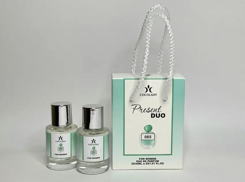 Cocolady Present Duo 085 Acqua Di Gioia - свежий женский аромат с водяно-цветочными нотами, вдохновленный морской природой. Купить этот парфюм означает окружить себя легкостью и гармонией. Группы ароматов: Водяные, Цветочные Начальная нота: Лимон, Мята Нота сердца: Жасмин, Пион Конечная нота: Кедр, Лабданум Бренд: Cocolady (лицензия Giorgio Armani) Модель: Present Duo 085 Acqua Di Gioia Пол: Женский Объем: 2x30 мл Год выпуска: 2010 Страна производитель: Объединенные Арабские Эмираты Флакон: Скло