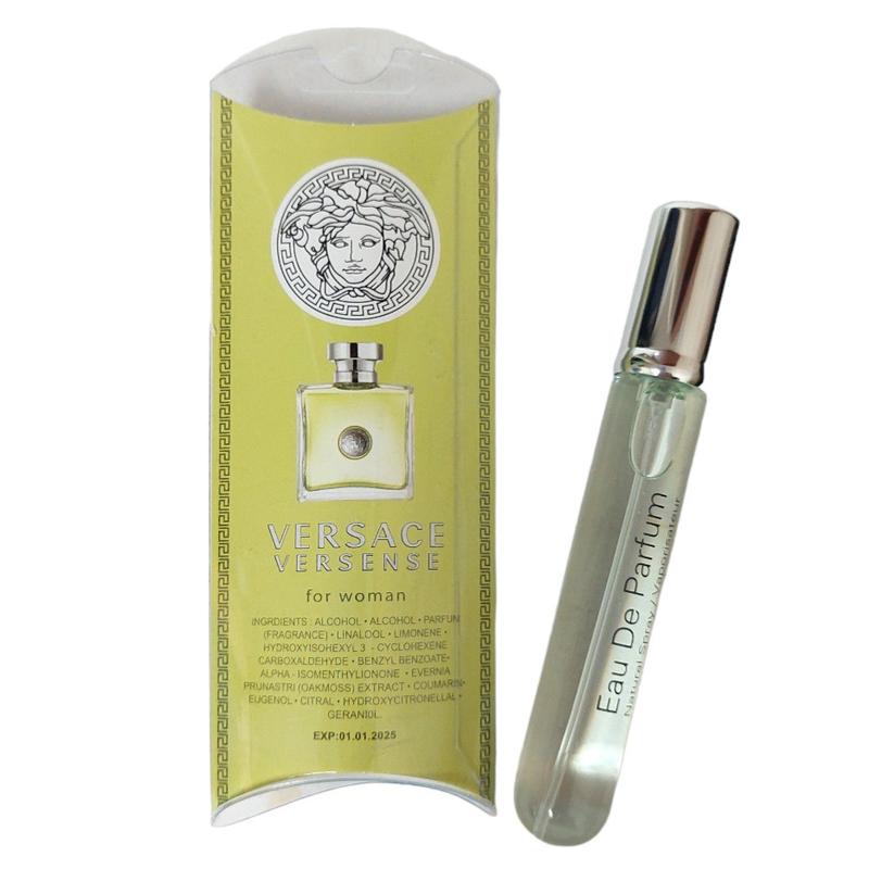 Духи женские Versace Versense 20 мл. (Версаче Версенс)) Парфюм выполнен в виде ручки, который удобно носить с собой. Вы в любой момент сможете освежить себя любимым ароматом. Духи-ручка поместятся в сумку, клатч, барсетку, портмоне и даже кошелёк. Стойкость духов достойная Вашему вниманию. Ну и плюс цена, мимо который Вы не сможете пройти мимо. 20 миллилитров любимого аромата - это не много и не мало - в самый раз. Пользуйтесь разными ароматами в зависимости от настроение и времени года, ведь интернет-магазин, предлагает Вам огромный ассортимент как женских, так и мужских духов. И помните, любой парфюм, может навеять самые тёплые воспоминания о приятных моментах, а это - бесценно.