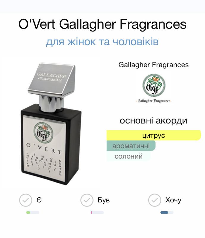 Пробник парфум O’vert Gallagher Оригінал Відправка Новою Поштою, Укрпоштою