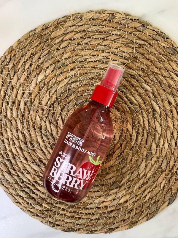 Парфумований спрей для тіла Juicy Strawberry Pink Victorias Secret 236ml Аромат: • Соковита полуниця — яскравий, літній, солодкий аромат, що асоціюється з легкістю, свіжістю та позитивом. Переваги Juicy Strawberry: • Підходить як для тіла, так і для волосся — не обтяжує, не сушить; • Легкий формат, який освіжає впродовж дня; • Можна наносити кілька разів — аромат не стає надмірним, а лише м’яко огортає; • Створює настрій безтурботності та жіночності — ідеально для літа, побачень, подорожей або просто щоб потішити себе.