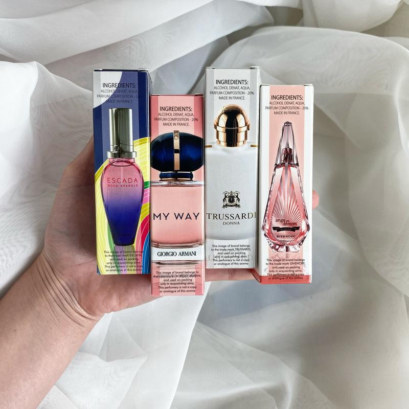💕У нас большой выбор ароматов для вас Идеально взять с собой в сумку или бросить в автомобиль 🚘 🤍Trussardi 🤍 - это шикарный аромат для женщин, принадлежит к типу цветочно-восточные. 💖 My Way💖 - праматери для женщин, принадлежит к цветочно-восточные, шипровые. 💕Ange ou Demon Le Secret 💕- это парфюм для женщин, принадлежит к типу цветочные. 💜 Moon Sparkle 💜 - это парфюм для женщин, принадлежит к типу фруктовые, цветочные. ____________________________ 🔝 Качество и стойкость вас уделит ✈️ Производитель - Франция 💰 Цена: ▪️1шт - 150грн ▪️2шт - 280грн ▪️3шт - 390грн