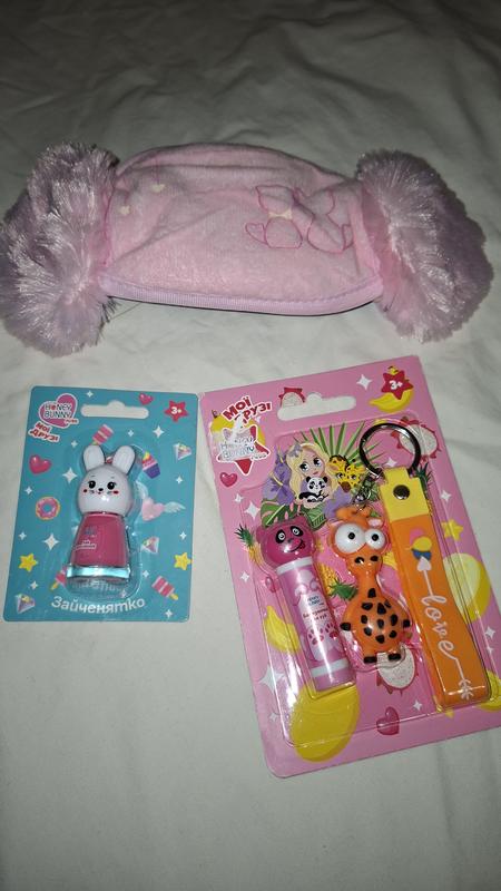 Сертифікований набір для дівчинки від 3-х honey bunny бальзам для губ, лак нігтів, брелок + мвска-аніме в подарунок.