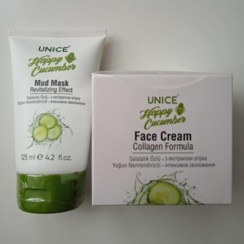 Набір крем та маска для обличчя з екстрактот огірка інтенсивно зволожуюча unice happy cucu...