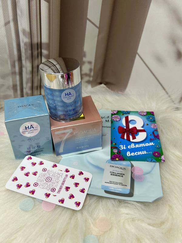 - Легкий крем-гель для очей з гіалуроновою кислотою Images HA Hyaluronic Acid Eye Cream - Крем для обличчя Bioaqua Moisturizing Lazy Hyaluronic Vegan Cream Також в подарунок набір подарункове оформлення та упаковка