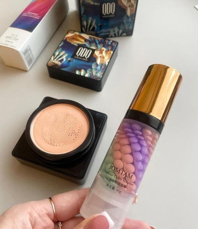 Набір кушон для обличча qdq та база трикольорова jomtam