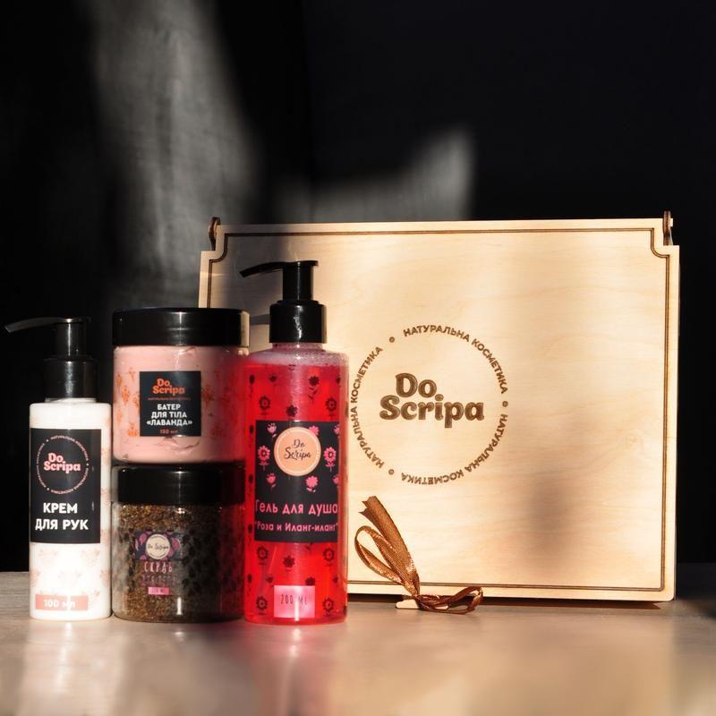 В набор входит: Гель для душа "Роза и Иланг-иланг" Баттер для тела "Лаванда" Скраб для тела с антицеллюлитными экстрактами Гель для душа "Роза" Крем для рук Деревянный подарочный бокс с логотипом Дополнительные характеристики: Пол: Женский