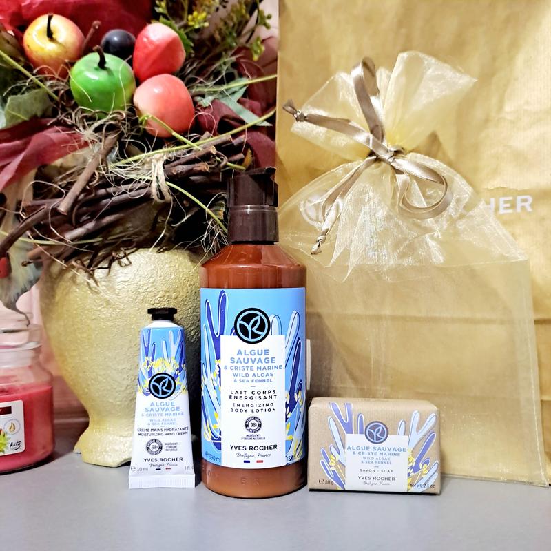 НАБІР ДЛЯ ТІЛА З АРОМАТОМ МОРСЬКІ ВОДОРОСТІ🧴☘️🌿 🌱парфумований крем для рук, об'єм 30 мл; 🌱молочко для тіла, об'єм 390 мл; 🌱мило, брусок; 🛍мішечок з органзи.