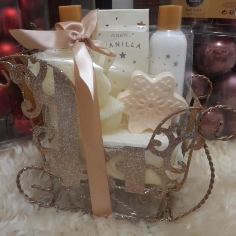 Подарунковий набірWONILLA 5в1 WONDERNICE Має приємний ванільний аромат Підходить для очищення шкіри буть якого типу Надає помя'кшувальну дію та залишає шкіру бархатистою У набір SPA входить .Ванільна бомбочка для вани .Ванільна сіль для вани .Ванільний лосьон для тіла .Ванільний гель для душу .Мочалка