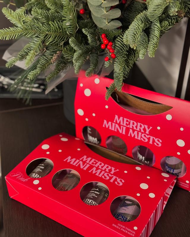 Новорічний подарунковий набір з 4 міні містів від PINK 🧸🎀 Спреї в обʼємі 75 мл. • Fresh & Clean-морська хвиля, стигла мандаринка, соковите яблуко. • Warm & Cozy-ваніль, смажений кокос, маракуйа. • Fresh & Clean Bubbly - яблуко, заморожені пелюстки жасмину, зацукрований ліс. • Warm Cozy Bubbly - грайлива малина, кремова ваніль та цукрова вата . Оригінал ‼️ 1200 грн 🏷️ Можна придбати окремо 400 грн/ шт