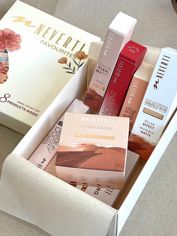 накладений платіж (наразі немає) Вісім топових бестселерів у розкішному подарунковому сеті. У наборі вісім хітових продуктів NEVERTI. Стильний, корисний і бажаний подарунок, який точно вразить кожну! До набору входить: Розсипчаста пудра SETTING LOOSE Nº002 Рідка матова помада Nº02 Туш для обʼєму та підкручування BEAUTI BOOST Віск для вкладання брів Матуюча база з філер ефектом Кремова помада LET LIPS REJOICE Nº02 Тінт для губ Nº06 Блиск-плампер з 3D ефектом Nº04