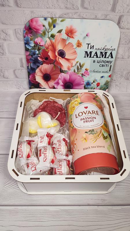 В наборі :чай, солодощі,мило ручної роботи,свічка ручної, роботи Півонія.