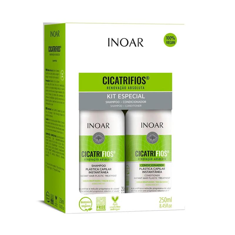 Хочеться зберегти колір волосся після фарбування? Inoar пропонує набір, який захищає колір та піклується про здоров'я волосся. Шампунь Inoar CicatriFios м'яко очищає шкіру голови та бореться з лупою. Маска Inoar CicatriFios живить та регенерує кератиновий шар волосся. Ампула Inoar CicatriFios ламінує фарбоване волосся, створюючи ефект гладкості. Закріпити результат рекомендуємо бальзамом Inoar CicatriFios, який надає м'якості та полегшує розчісування. Зустрічай Новий рік у своєму улюбленому яскравому кольорі! Набір «Ідеальний колір» від «Иноар»: шампунь і кондиціонер для закріплення кольору після фарбування і профілактики лупи, 2 х 250 мл Часте фарбування не тільки шкодить волоссю і шкірі голови, але і говорить про те, що барвні пігменти легко вимиваються з них. Це означає, що волосся пошкоджені, у них є порожнечі, з-за чого і відбувається вимивання кольору. Те ж стосується і змін у стані шкіри голови з-за агресивного впливу на неї хімічних складових фарби, чого й виникає лупа. Причина появи останній може бути різною, але її наявність у волоссі – це завжди привід для занепокоєння. Хто знайомий з такою проблемою, той знає, наскільки важко позбутися лупи, оскільки найчастіше споживачам пропонують засоби, які лише прибирають симптом. Всі ці розрекламовані шампуні лише очищають волосся від лусочок, не пропонуючи лікування. Фахівці бразильського бренду «Иноар» підійшли до вирішення даної проблеми комплексно. Вони об'єднали в одній формулі та лікувальні компоненти, і очищають і зволожують, і закріплюють колір. Набір «Ідеальний колір», в який входять шампунь і кондиціонер, має перевагу перед іншими аналогічними засобами. При щоденному застосуванні даних продуктів, завдяки глибокому проникненню у волосяний стрижень компонентів у їх складі, відбувається збагачення, пом'якшення і лікування волосся. Також вони корисні власникам кучерявого волосся, тому, що поступово зменшують їх обсяг, прибирають пухнастість, роблять їх слухняними та м'якими. Що ж так відрізняє дані продукти від численної «армії» аналогів на ринку України? Звичайно, їх склад. Шампунь Найчастіше споживачі не розуміють, що означають слова на латиниці в переліку складу інгредієнтів. Ми розкриваємо їх значення і властивості у складі набору «Ідеальний колір». Лікувальні компоненти в складі шампуню: Кератин (Keratin). Натуральний білок, сумісний з людським кератином, який вбудовується в дисульфідні зв'язки у структурі волосяного стрижня, заповнюючи пустоти, відколи та тріщини всередині нього. Живить волосся по всій довжині, повертаючи їм цілісність, надаючи блиск і м'якість. Пантенол (Panthenol). Кращий «доктор» для шкіри голови та волосяних цибулин. Глибоко проникаючи всередину волосся, він зволожує їх, стимулює клітини до оновлення, зміцнює коріння, позбавляє від лупи та навіть себореї. Арганова олія (Argania Spinosa Kernel Oil). Рідкісний, дорогий, але дуже ефективний засіб для ламкого, втомленого, посіченого волосся. Забезпечує волосся повноцінним живленням і вітамінізацією, робить його блискучим, зволоженим та гладким. Лимонна кислота (Citric Acid). Вона сприяє звуженню пор і регулювання виділення себума. Ліналоол (Linalool). Компонент рослинного походження, доданий в шампунь для додання йому захисних властивостей. Кумарин (Coumarin). Інгредієнт рослинного походження (боби тонка), володіє тонізуючими властивостями, надає продукту ле