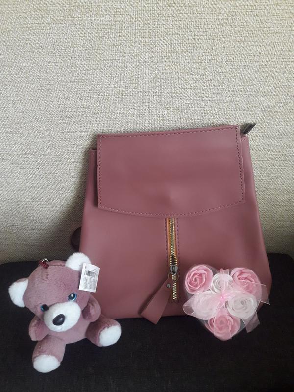 Набор: рюкзак молодежный, кожзам + подарочный набор мыла розовый + мягкая игрушка "мишка"