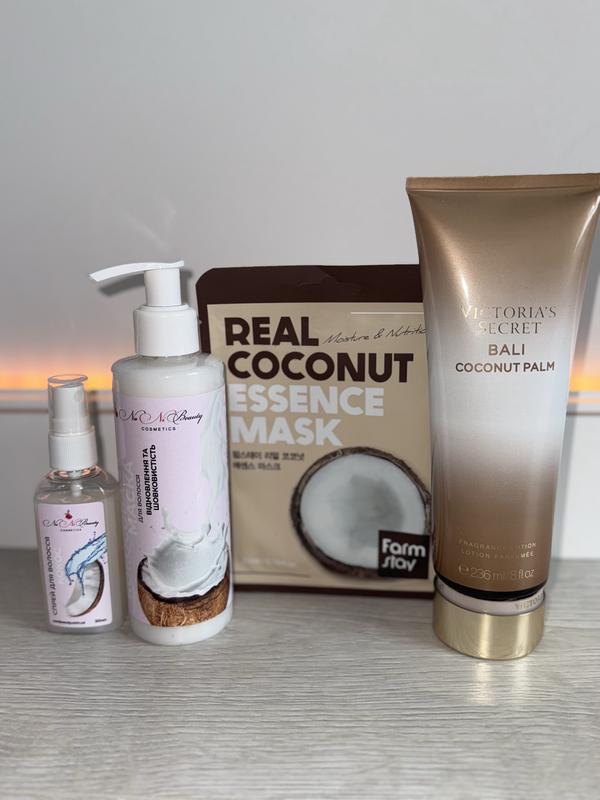 набір подарунковий 4в1🎁кокосовий бокс🥥лосьон VS+ маска+ маска для обличчя +спрей для волосся