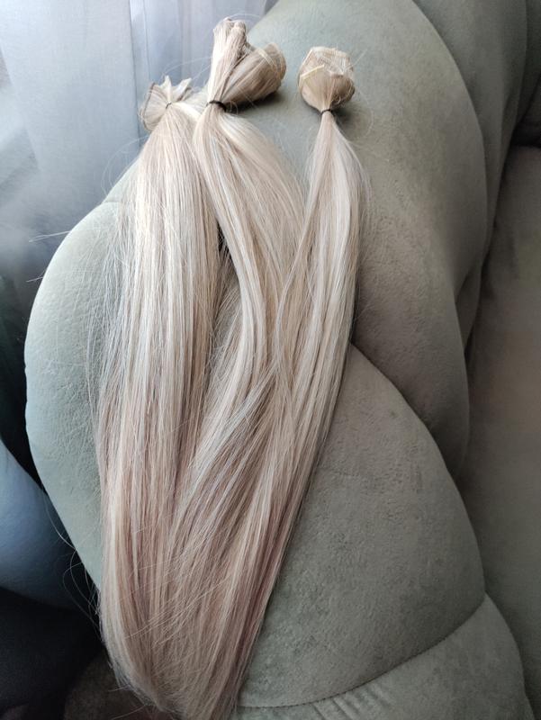 біо волосся нове на тресі в пучку для нарощування. шов тоненький. волосся гладеньке. природній світло русий як мелірований колір. кінці гладеньких не посічені. довжина 65 см