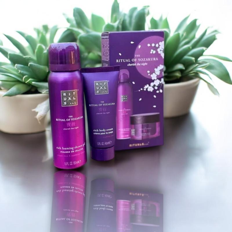 Два розкішні міні-продукти лімітованої серії "The Ritual of Yozakura" від бренду Rituals: пінка для душу та крем для тіла, створені на основі есенції вишні Йошино та екстракту чорного рису. Цей набір забезпечує оксамитову м'якість шкіри та ідеальний аромат для особливих моментів. Насолоджуйтесь доглядом з обмеженою серією від Rituals. Гель-піна для душу, 50 мл., в лімітованому тиражі. Насолоджуйтеся чудовим поживним і насиченим запахом чуттєвих білих квітів з амброво-гурманськими відтінками ванілі та мигдального молока. Тонкі фруктові ноти виблискують у верхньому шарі, доповнюючи загальне відчуття, завдяки чому цей сильний і солодкий аромат випромінює радість і сяйво. Крем для тіла, 40 мл., з вітаміном Е для глибокого живлення і максимального зволоження. Він не залишає липкості, швидко вбирається в шкіру і особливо підходить для сухої і дуже сухої шкіри.