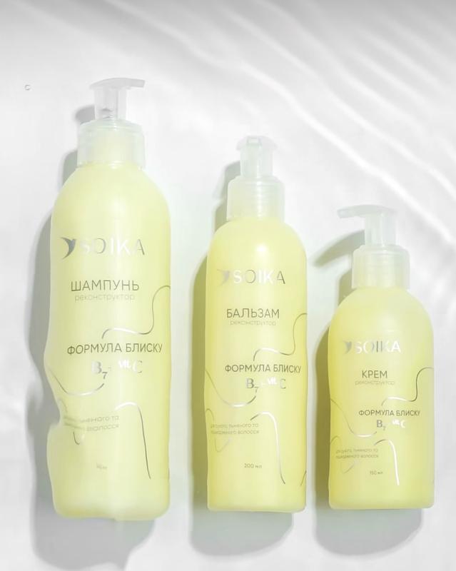 набір 3в1 для реконструкції волосся "формула блиску" soika шампунь 340мл , бальзам 200 мл , крем 150