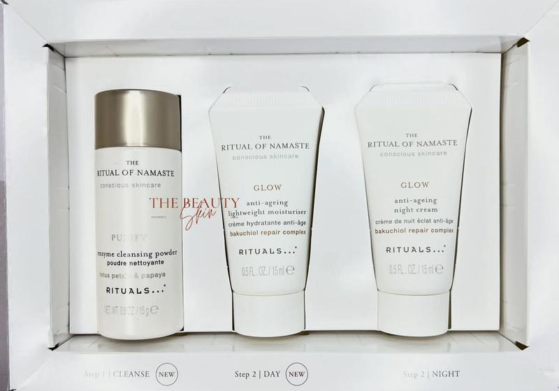 Набір мініатюр для обличчя Ritual Namaste Ритуал Намасте демонструє повагу як до вашої природної краси, так і до навколишнього середовища завдяки високоефективним формулам, які складаються з понад 95% інгредієнтів натурального походження. Ці три продукти туристичного розміру - ідеальний спосіб випробувати нову рутину, і вони досить малі, щоб брати їх із собою, куди завгодно. Цей набір містить: 💎Очищаючу ензимну пудру для обличчя (15 гр)💎 Відчуйте очищувальну силу ферментів і ніжний і потужний пілінг. При контакті з водою він перетворюється з порошку на кремову піну. Активні ферменти папайї та ананаса розчиняють мертві клітини шкіри та забезпечують гладкий, рівний та сяючий колір обличчя. Глибоко очищує пори. Підходить для всіх типів шкіри. 💎Новинку - бестселер антивіковий зволожуючий крем, тепер з ще легшою формулою (15 мл). Виготовлений з бакучіолу, природної альтернативи ретинолу, він оживляє ваш колір обличчя, зменшує появу тонких ліній і націлений на темні плями для більш яскравого, більш молодого тону. Швидко поглинається, легкий, глибоко зволожує шкіру, допомагаючи відновити сяйво і поліпшити текстуру. Ідеально підходить для всіх типів шкіри, включаючи чутливу шкіру, він допомагає захистити від впливів навколишнього середовища, таких як забруднення та синє світло, залишаючи вашу шкіру поповненою та заспокоєною. 💎 Нічний крем з нашим культовим Bakuchiol Repair Complex (15 мл) допомагає шкірі відновитися протягом ночі. Під час сну ваша шкіра отримує інтенсивну дозу активних речовин, відкриваючи більш молодий колір обличчя до ранку. Він ще більше оживляє шкіру, підвищуючи її сяйво за допомогою формули, збагаченої ефективними інгредієнтами, такими як бакучіол - натуральна рослинна альтернатива ретинолу - і дикий індиго. Допомагає помітно мінімізувати появу тонких ліній, поліпшити еластичність шкіри та захистити від негативного впливу вільних радикалів.