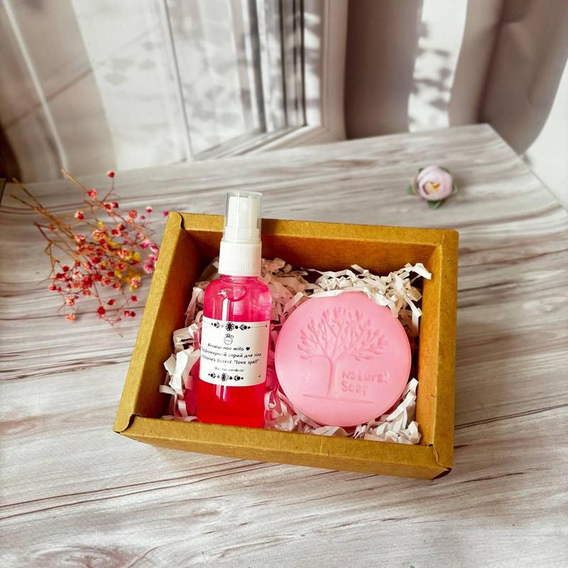 Подарунковий набір ручної роботи: ароматизований спрей для тіла з шиммером + мило ручної р...