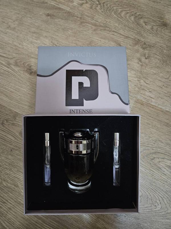 Це набір, що пахне перемогою, силою і магнетизмом. Invictus Intense -- аромат чемпіона, який не просто виграє, а залишає слід. У наборі -- флакон у формі трофею 100 мл та два тревел-спреї по 10 мл. Це подарунок для чоловіка, який грає на максимум -- у стилі, енергії та харизмі.